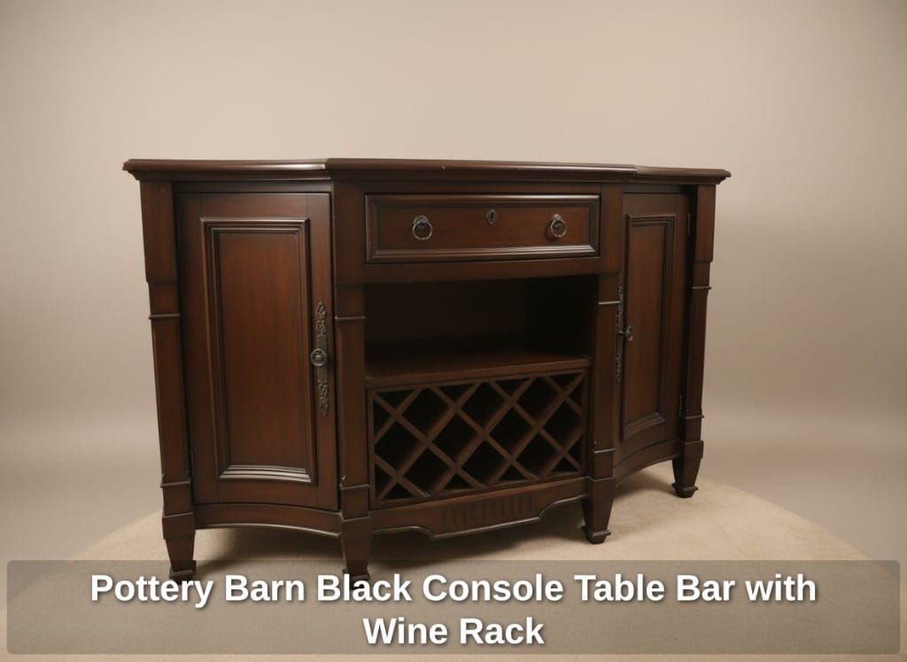 Pottery Barn Black Console Table Bar with Wine Rack