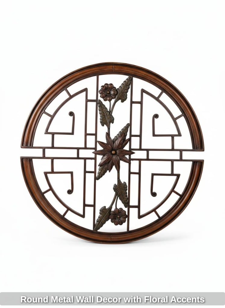 Round Metal Wall Decor with Floral Accents