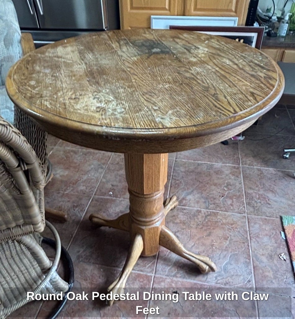 Round Oak Pedestal Dining Table with Claw Feet