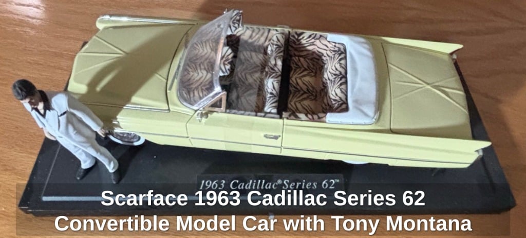 Scarface 1963 Cadillac Series 62 Convertible Model Car with Tony Montana Figure