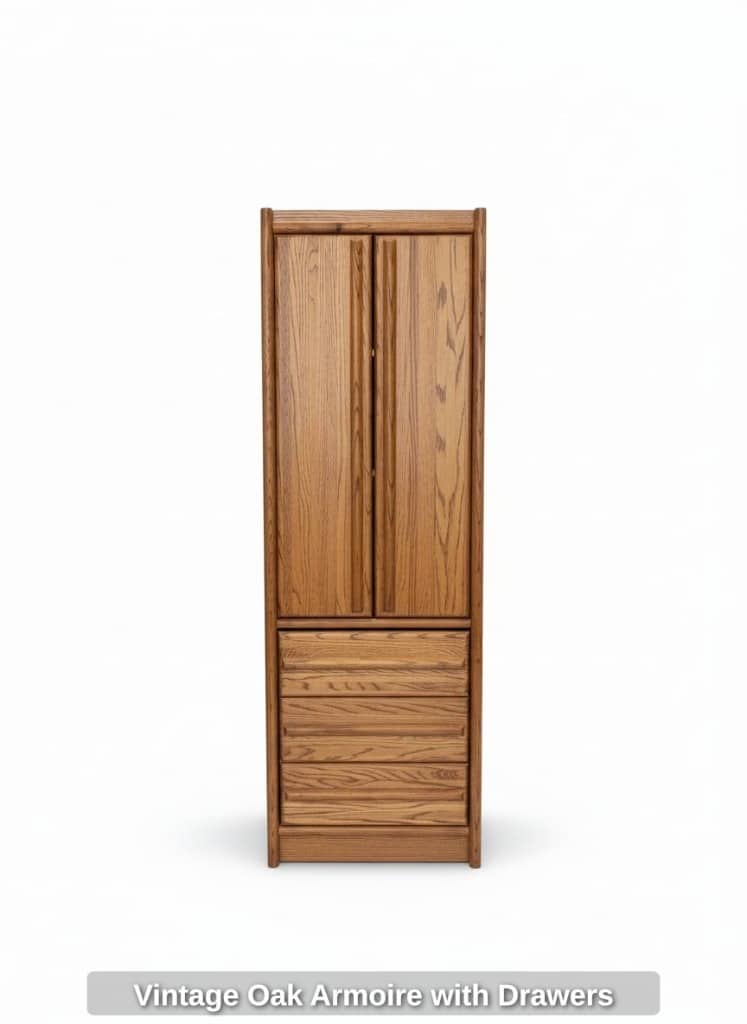 Vintage Oak Armoire with Drawers