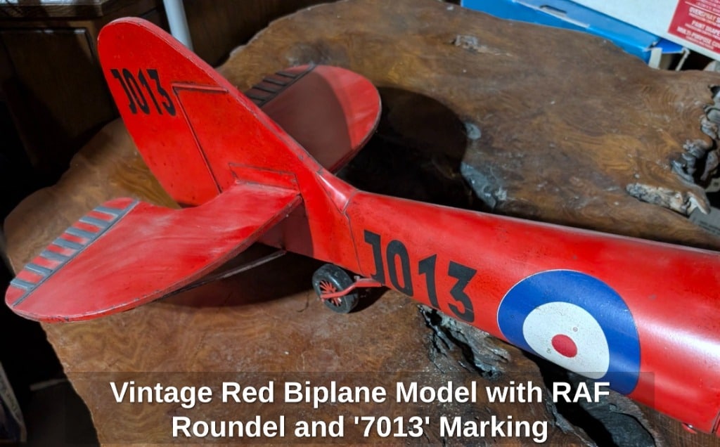 Vintage Red Biplane Model with RAF Roundel and ‘7013’ Marking