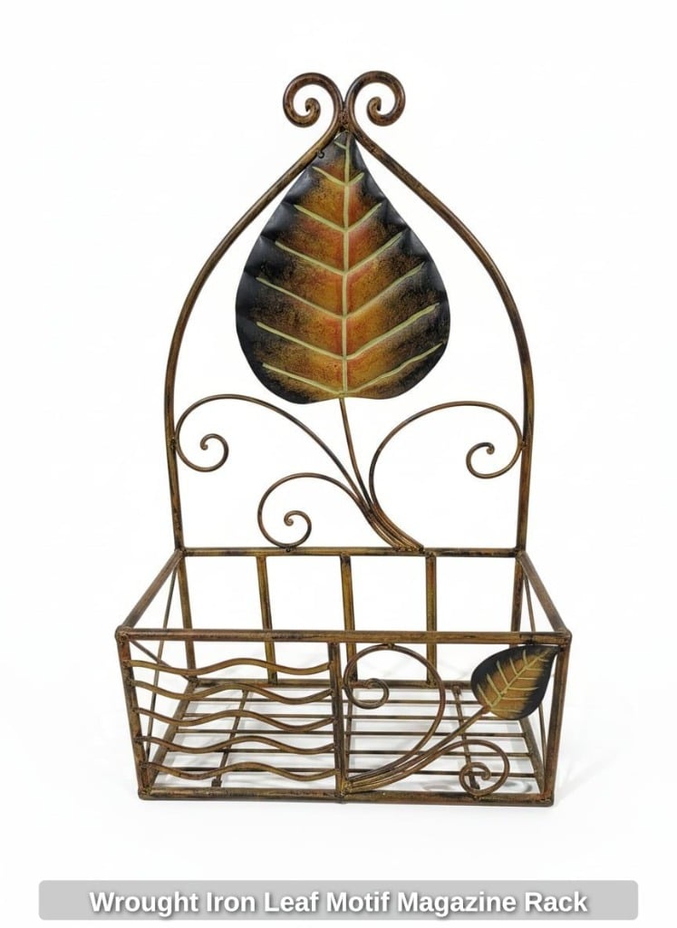 Wrought Iron Leaf Motif Magazine Rack