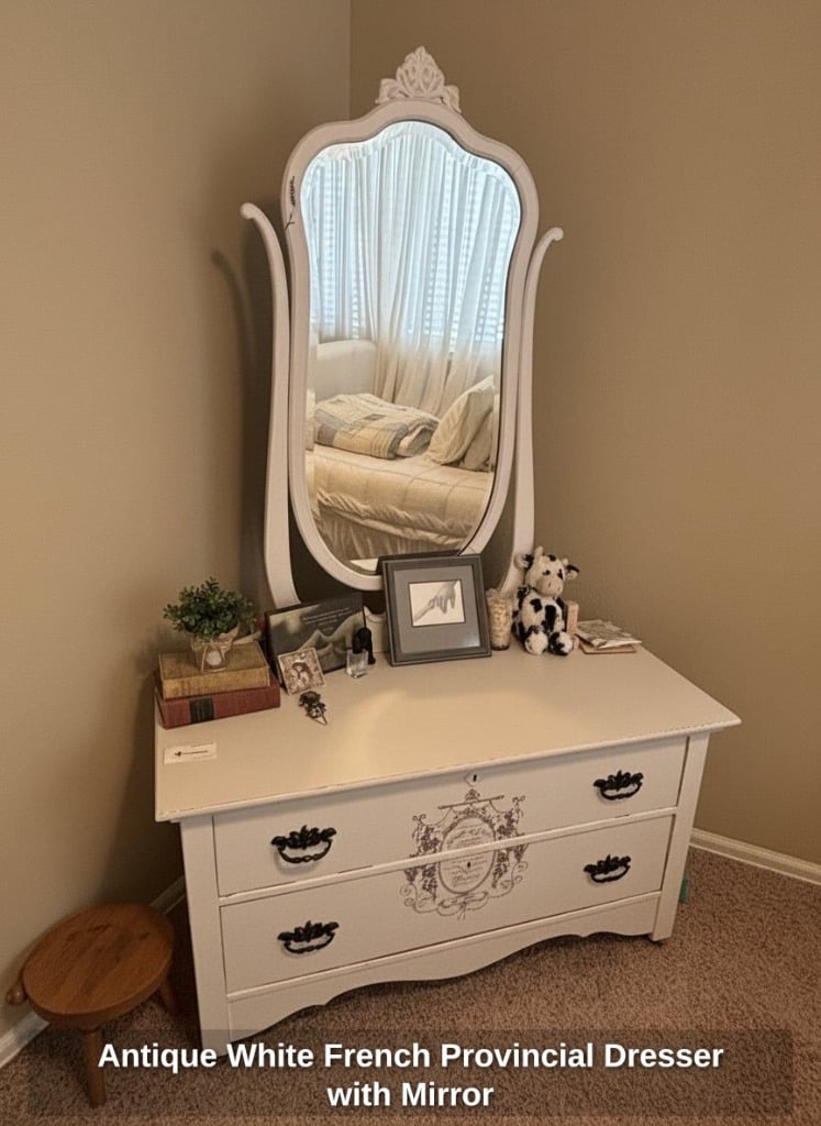Antique White French Provincial Dresser with Mirror