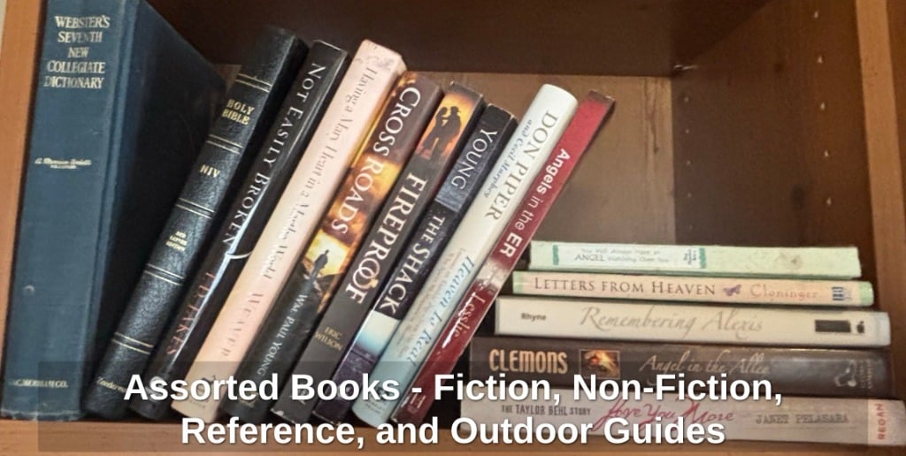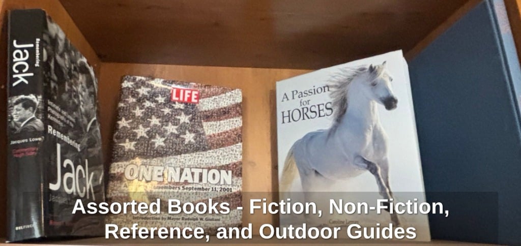 Assorted Books – Fiction, Non-Fiction, Reference, and Outdoor Guides