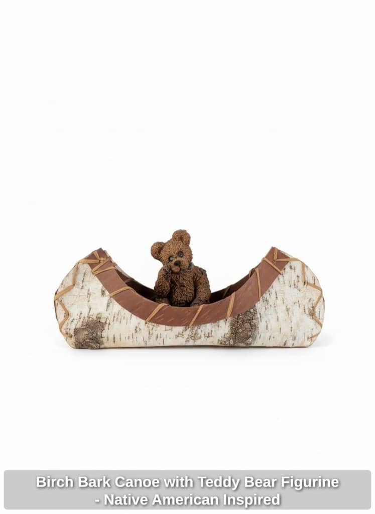 Birch Bark Canoe with Teddy Bear Figurine – Native American Inspired