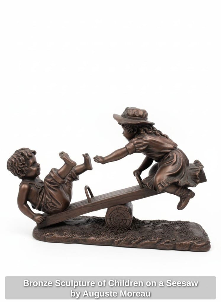 Bronze Sculpture of Children on a Seesaw by Auguste Moreau