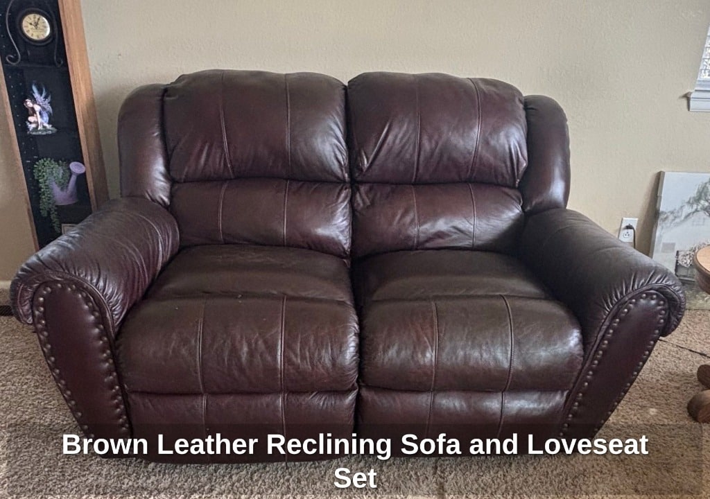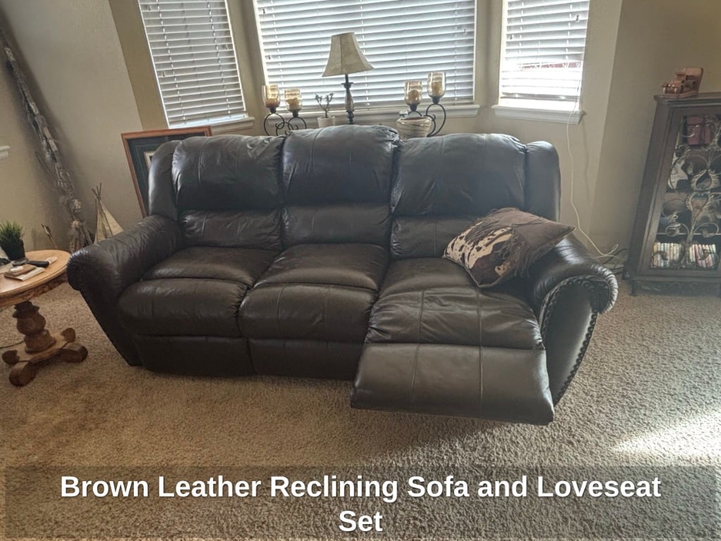 Brown Leather Reclining Sofa and Loveseat Set