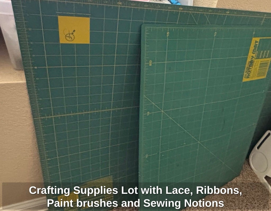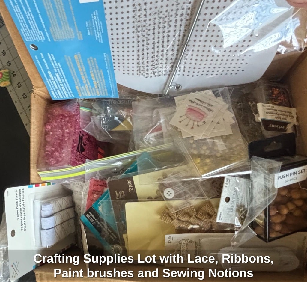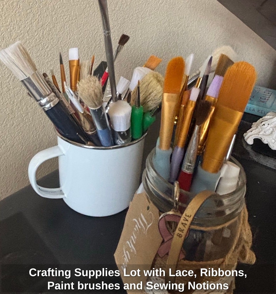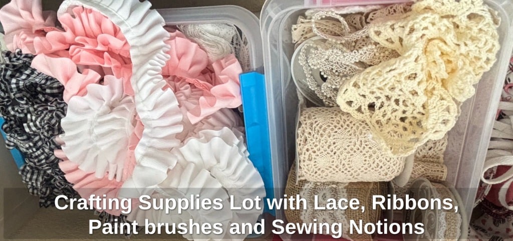 Crafting Supplies Lot with Lace, Ribbons, Paint brushes and Sewing Notions