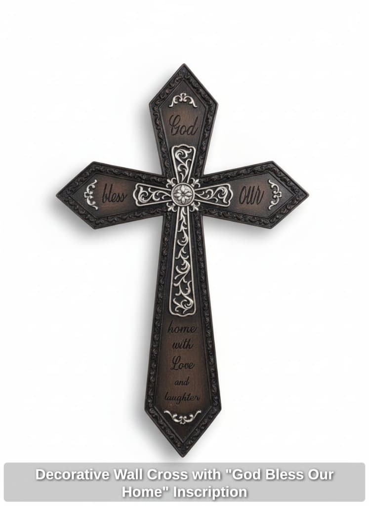 Decorative Wall Cross with “God Bless Our Home” Inscription