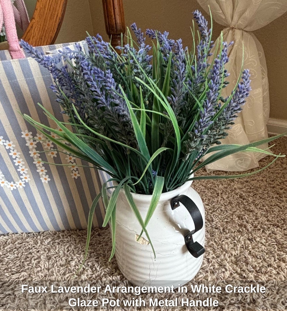 Farmhouse Mantel Decor Set with Arched Window Pane, Lavender Print, and Vintage Clock