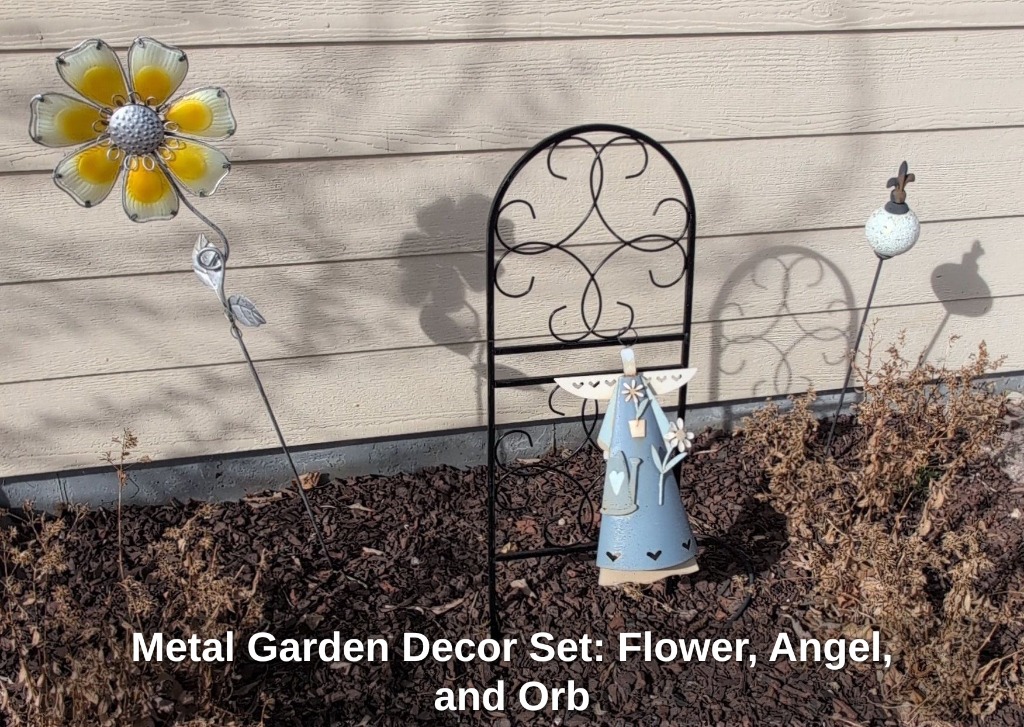 Metal Garden Decor Set: Flower, Angel, and Orb