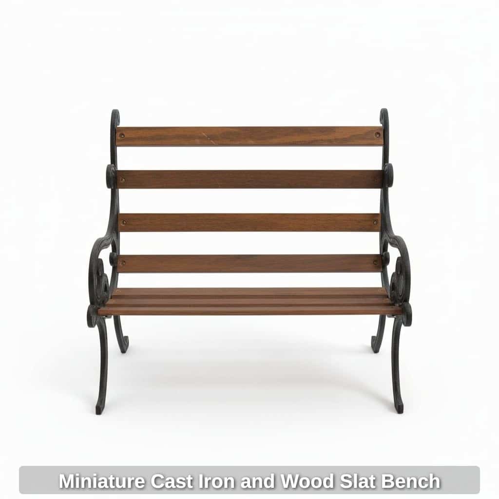 Miniature Cast Iron and Wood Slat Bench