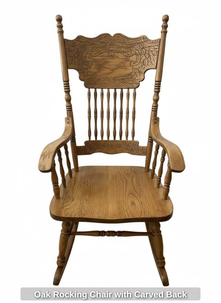 Oak Rocking Chair with Carved Back