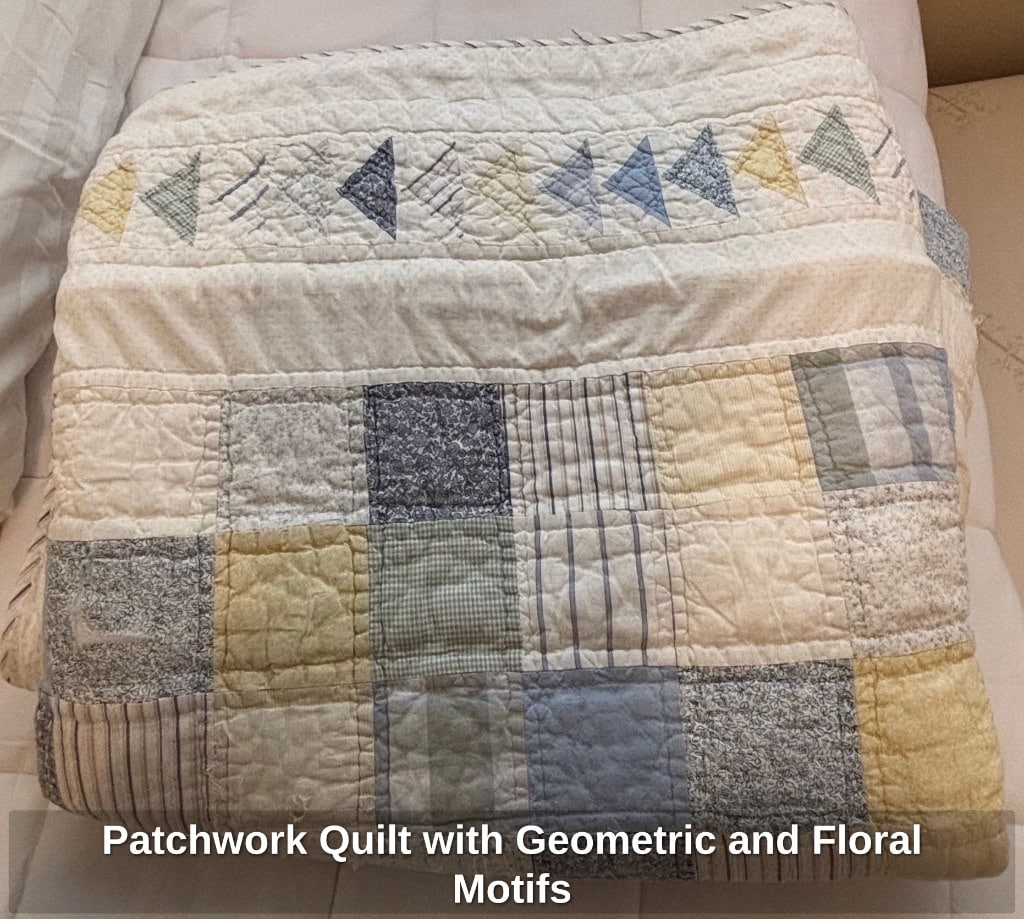 Patchwork Quilt with Geometric and Floral Motifs