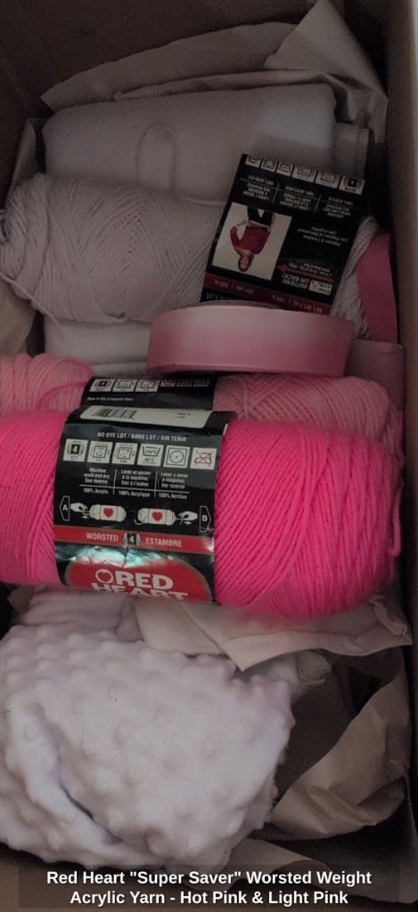 Red Heart “Super Saver” Worsted Weight Acrylic Yarn – Hot Pink & Light Pink