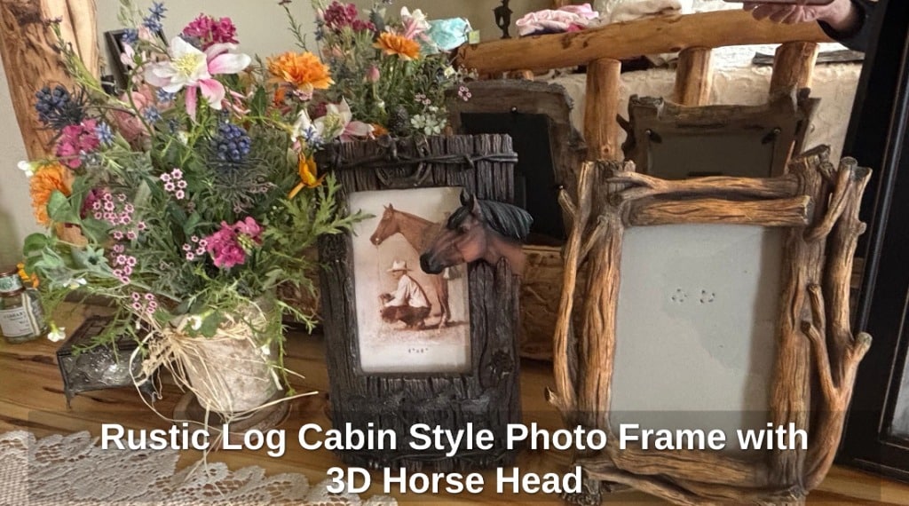 Rustic Log Cabin Style Photo Frame with 3D Horse Head