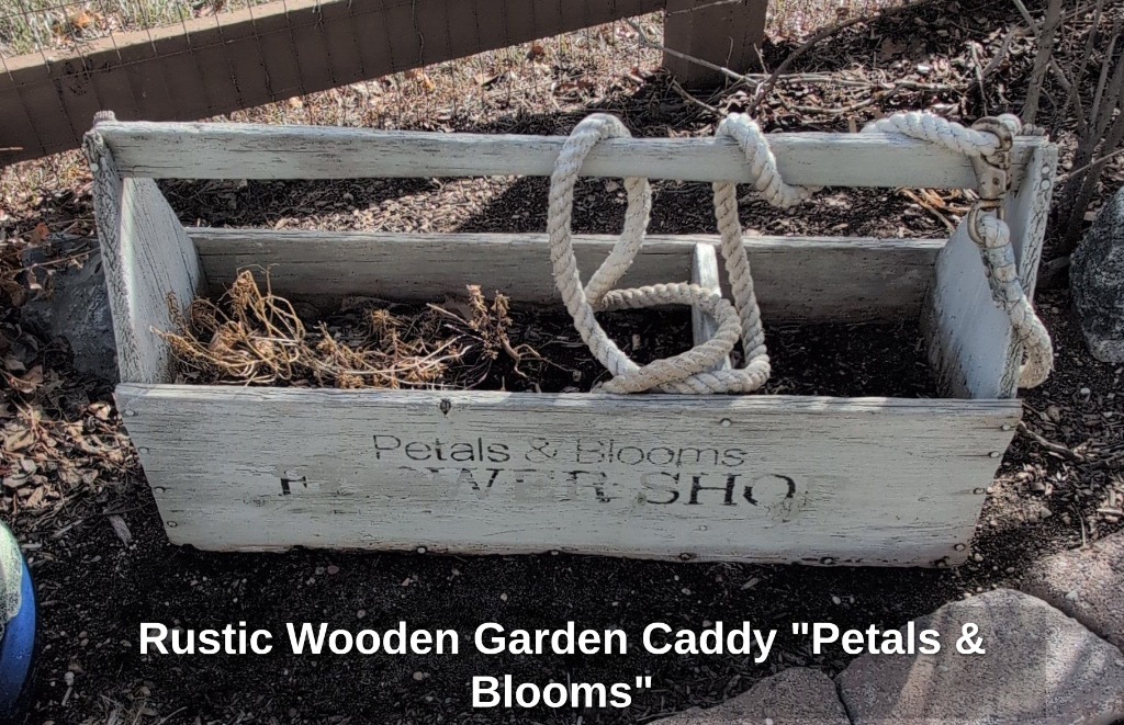 Rustic Wooden Garden Caddy “Petals & Blooms”