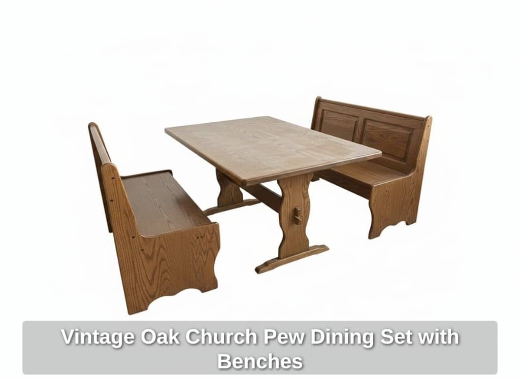Vintage Oak Church Pew Dining Set with Benches