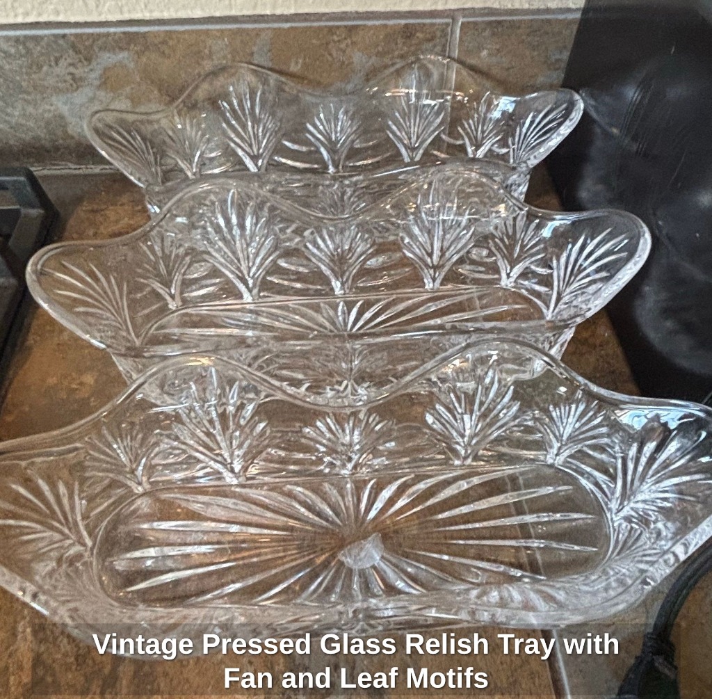 Vintage Pressed Glass Relish Tray with Fan and Leaf Motifs