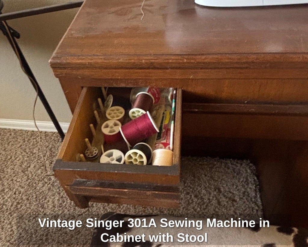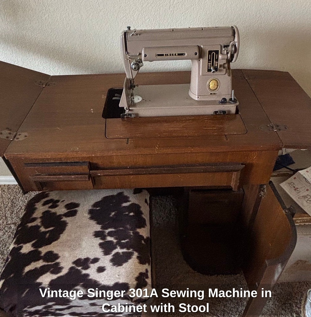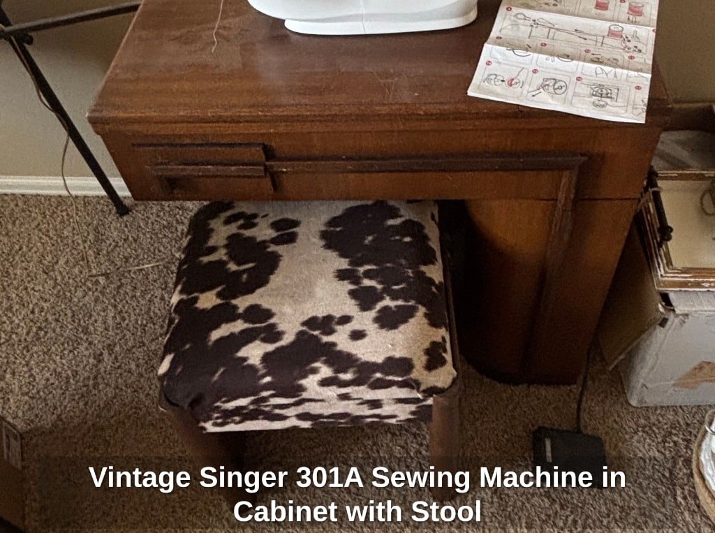 Vintage Singer 301A Sewing Machine in Cabinet with Stool