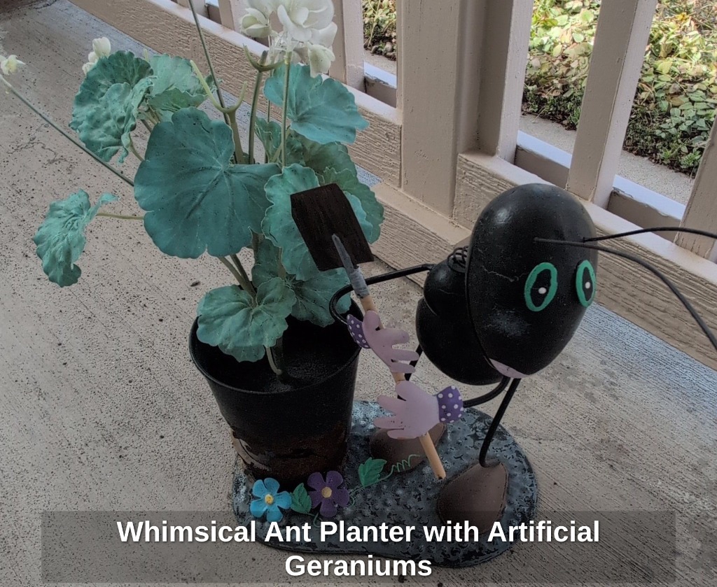 Whimsical Ant Planter with Artificial Geraniums