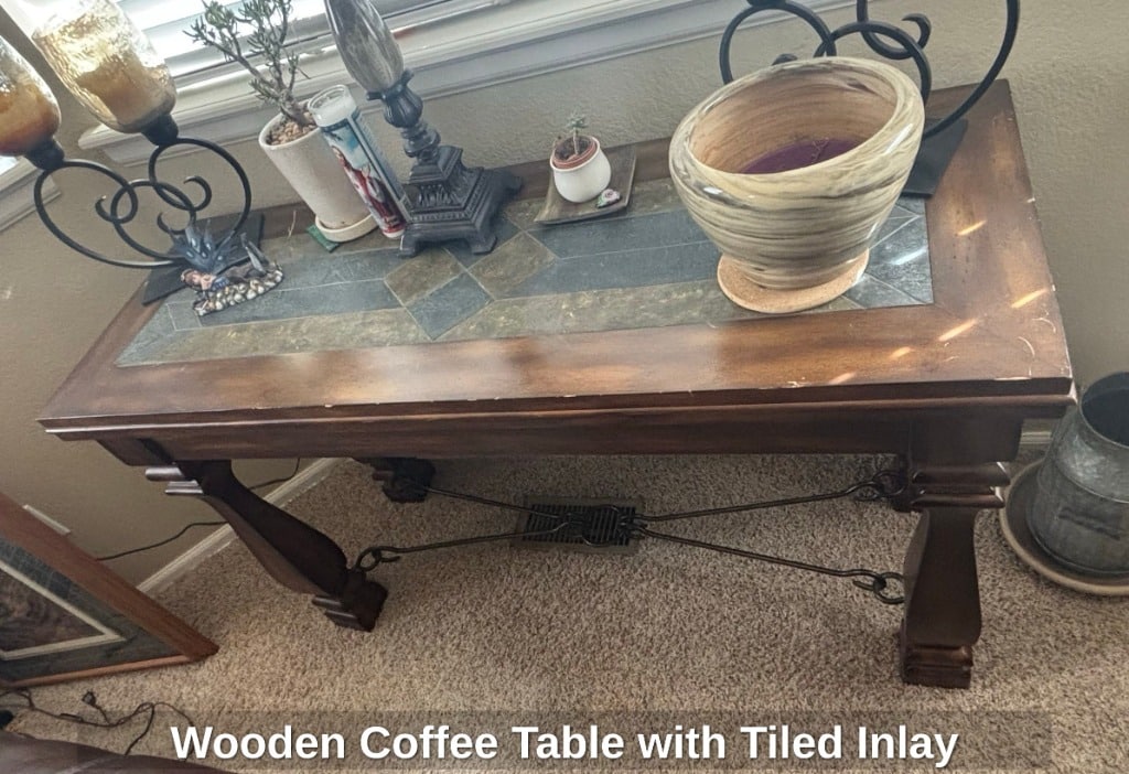 Wooden Coffee Table with Tiled Inlay