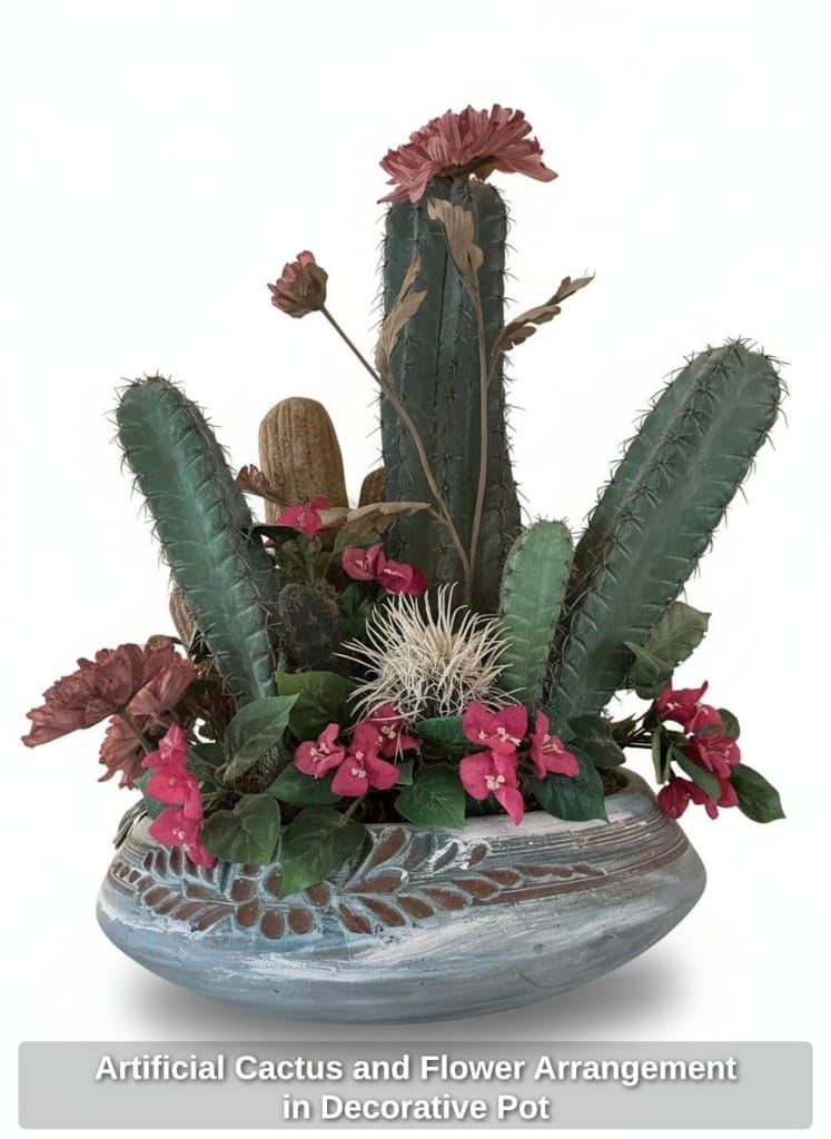 Artificial Cactus and Flower Arrangement in Decorative Pot