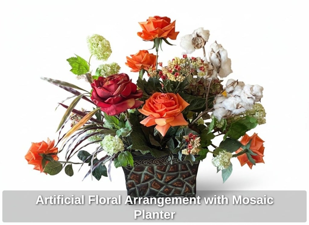 Artificial Floral Arrangement with Mosaic Planter