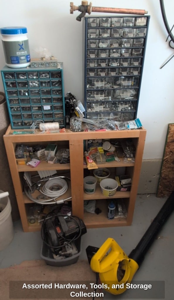Assorted Hardware, Tools, and Storage Collection