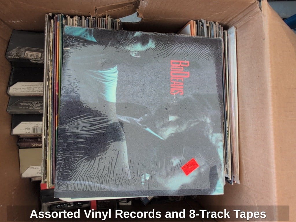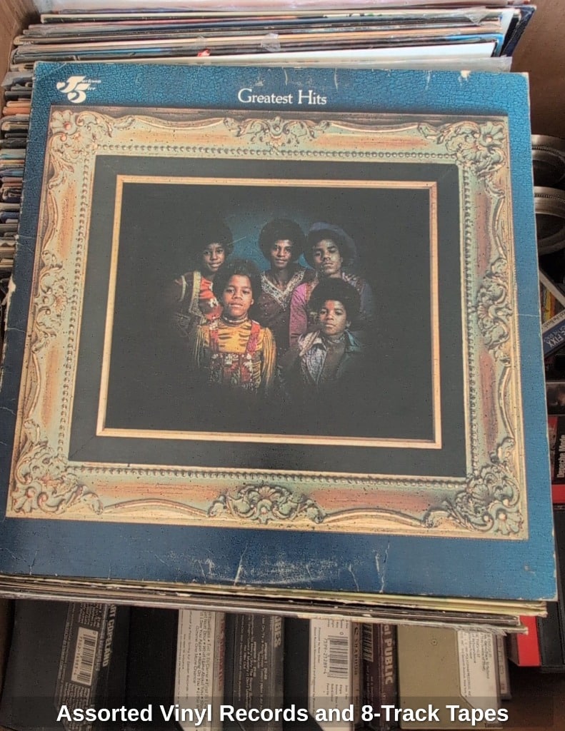 Assorted Vinyl Records and 8-Track Tapes