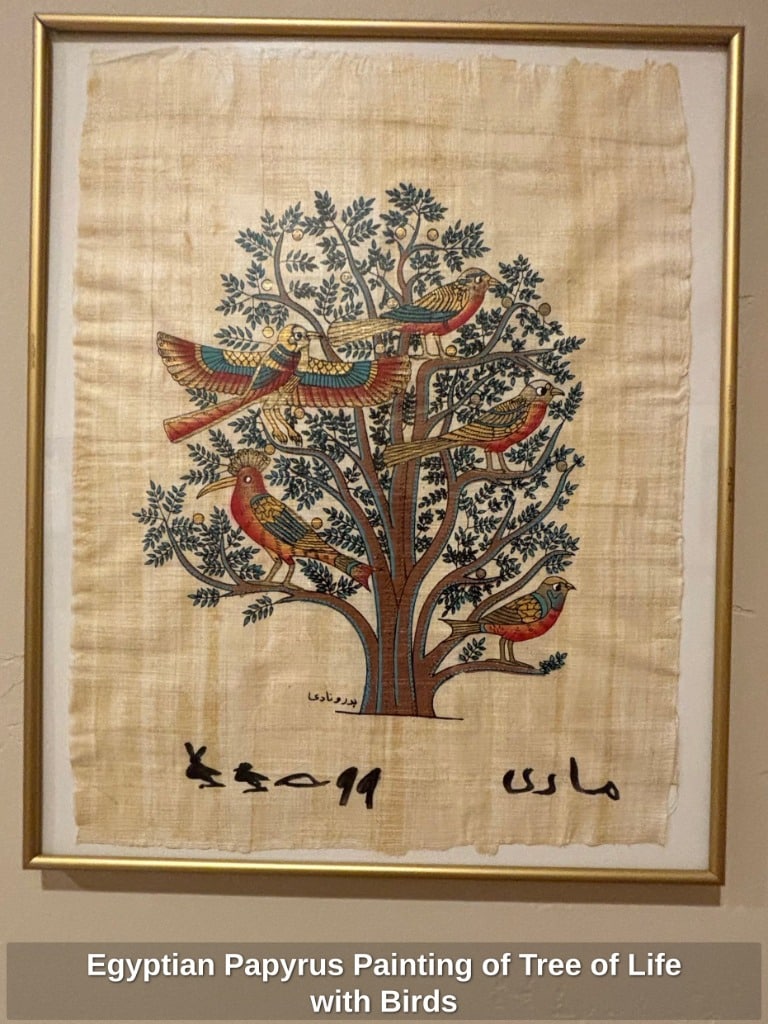 Egyptian Papyrus Painting of Tree of Life with Birds