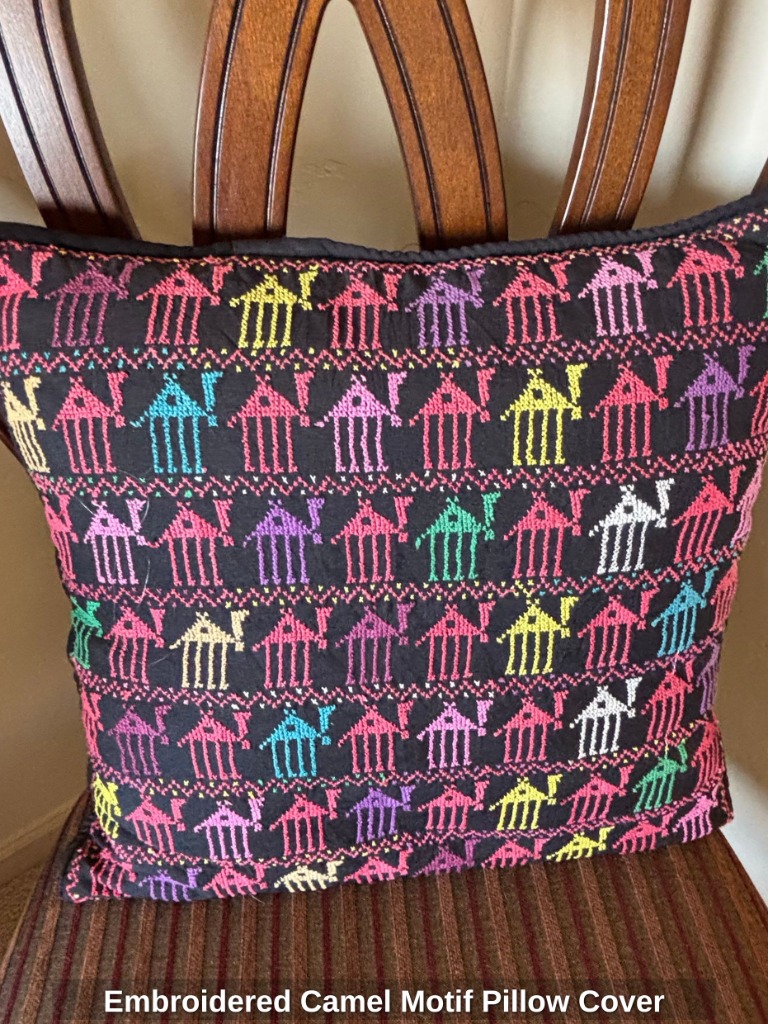 Embroidered Camel Motif Pillow Cover