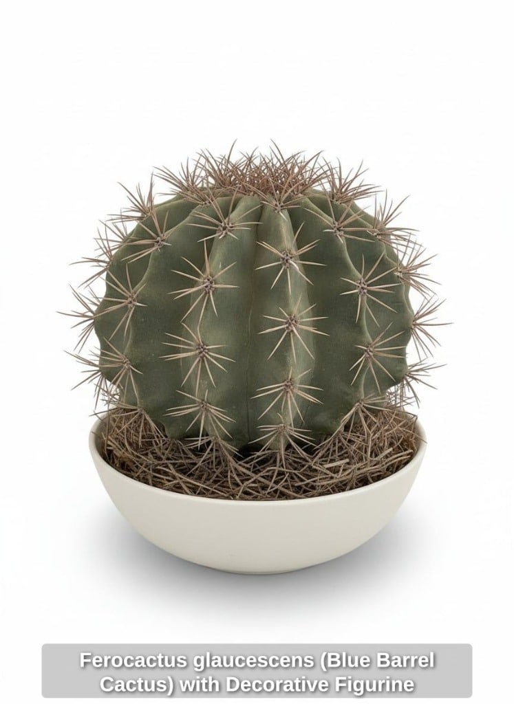 Ferocactus glaucescens (Blue Barrel Cactus) with Decorative Figurine