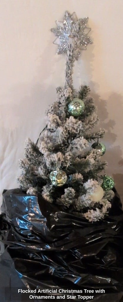 Flocked Artificial Christmas Tree with Ornaments and Star Topper