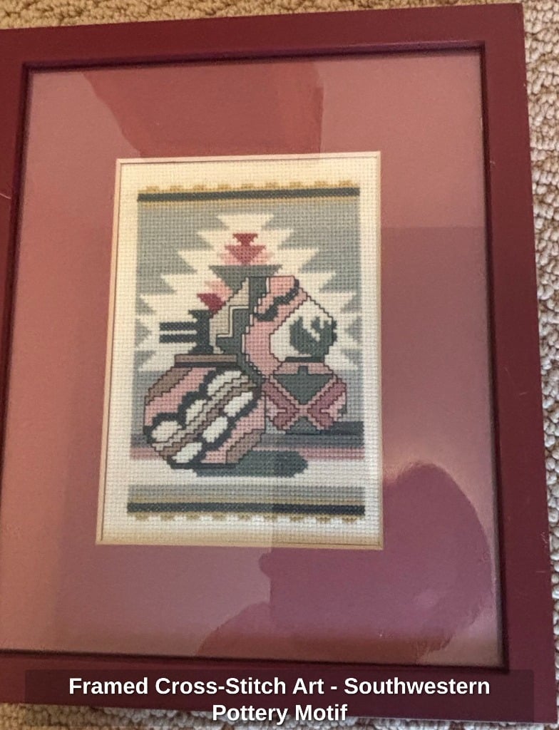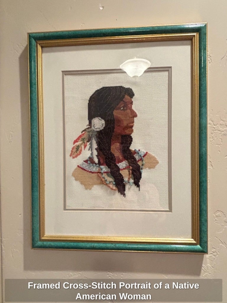 Framed Cross-Stitch Portrait of a Native American Woman