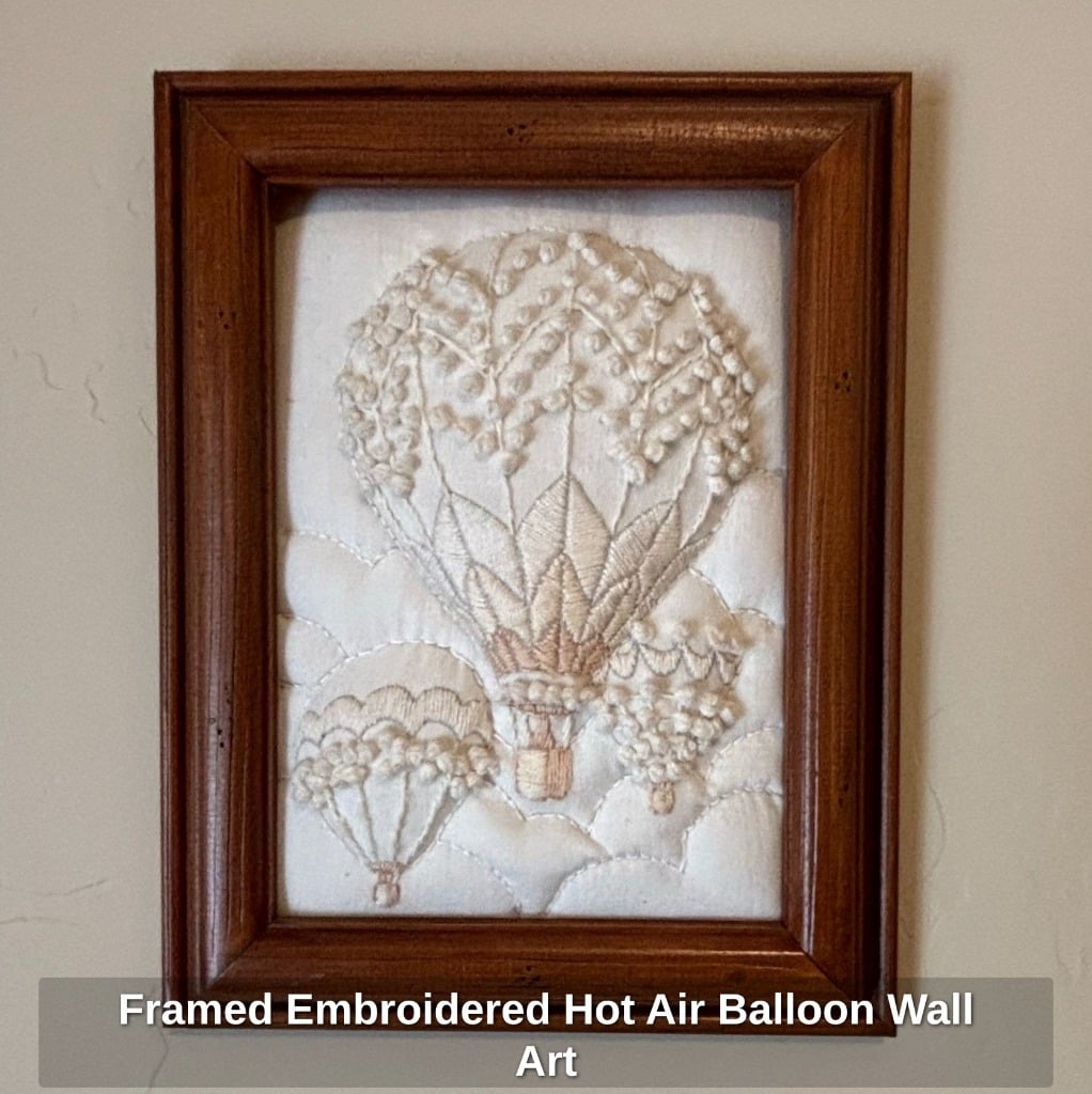 Framed Embroidered Hot Air Balloon Wall Art
