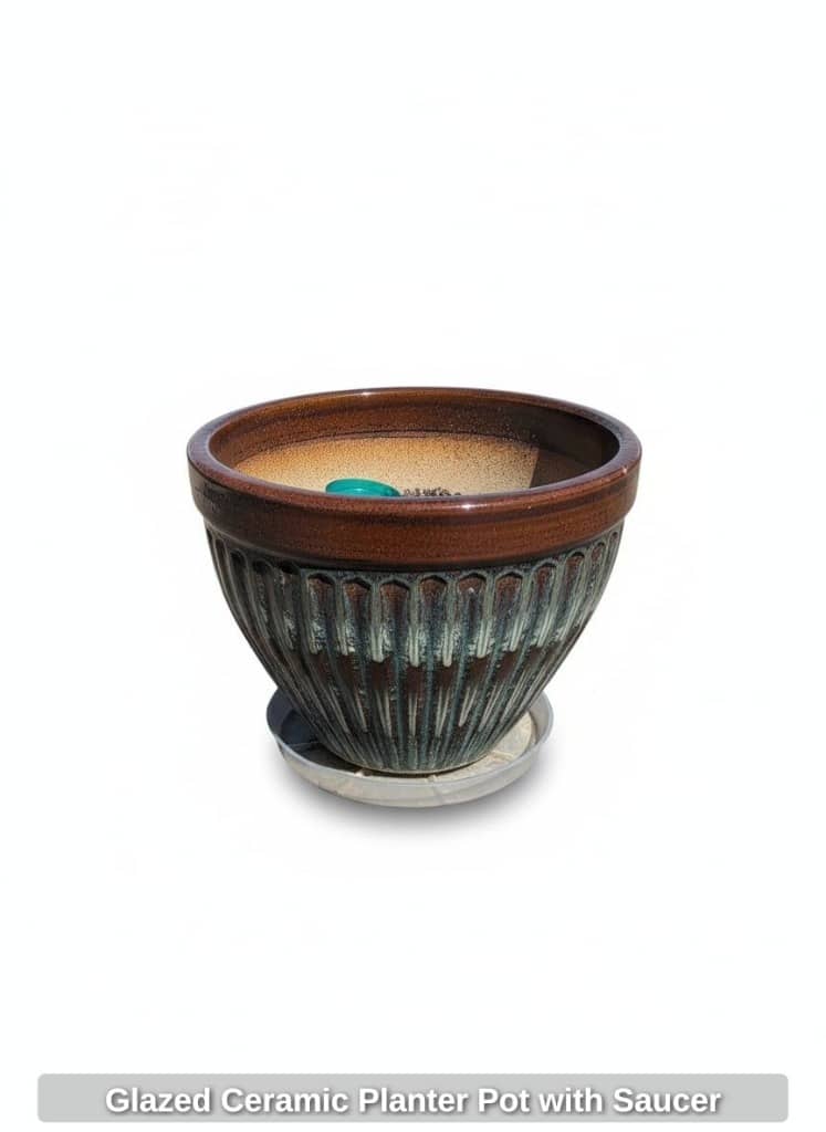 Glazed Ceramic Planter Pot with Saucer