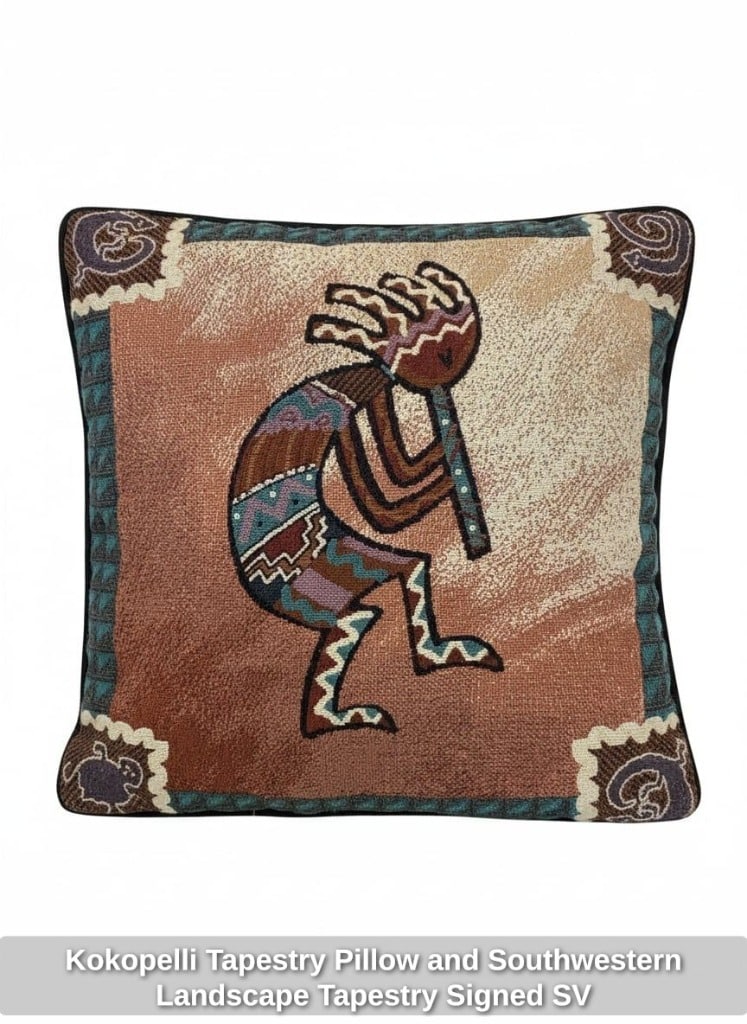 Southwestern Style Loveseat with Wood Trim and Kokopelli Pillow