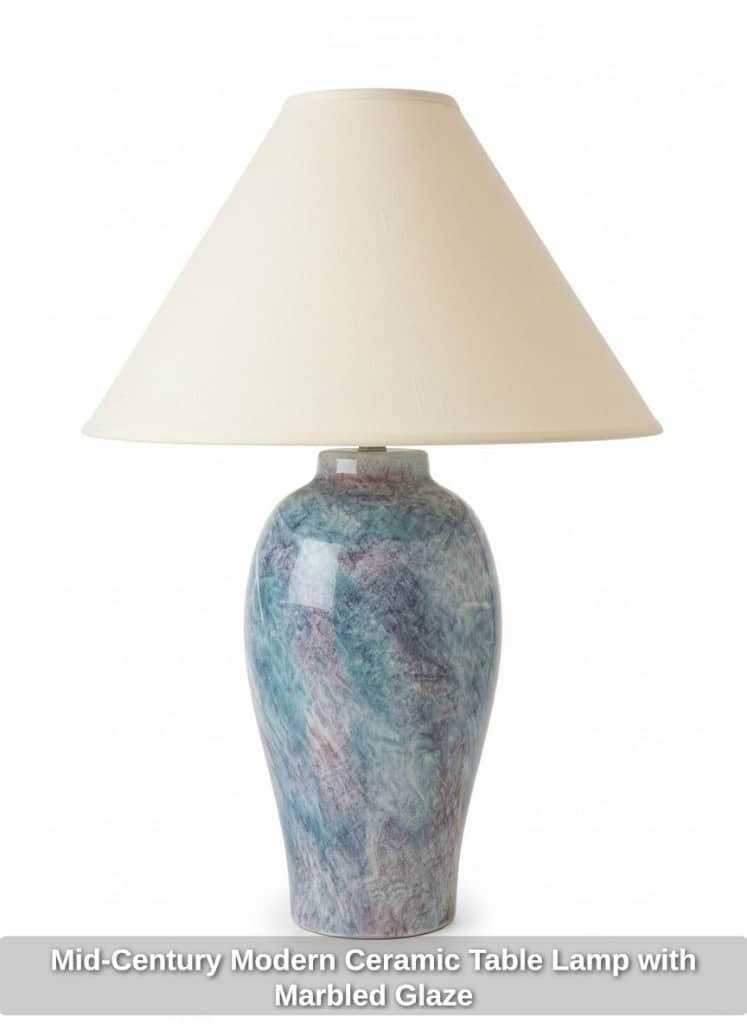 Mid-Century Modern Ceramic Table Lamp with Marbled Glaze