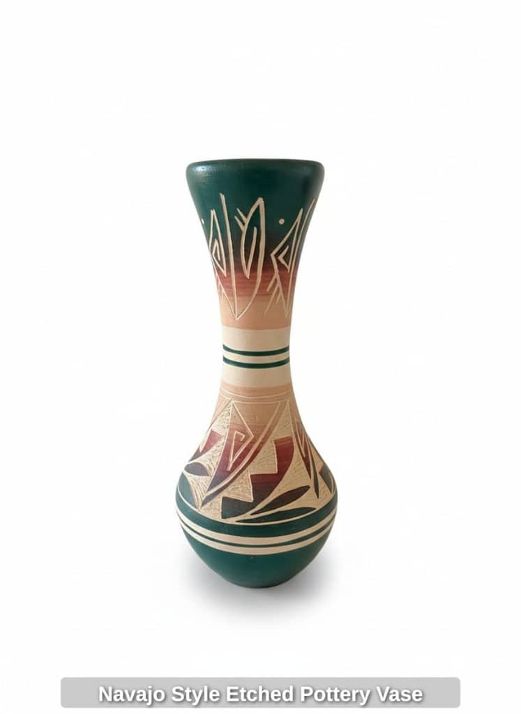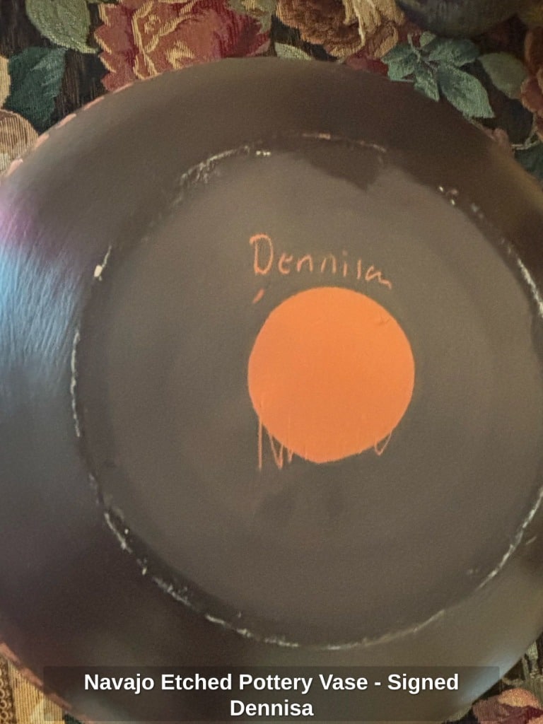 Navajo Etched Pottery Vase – Signed Dennisa