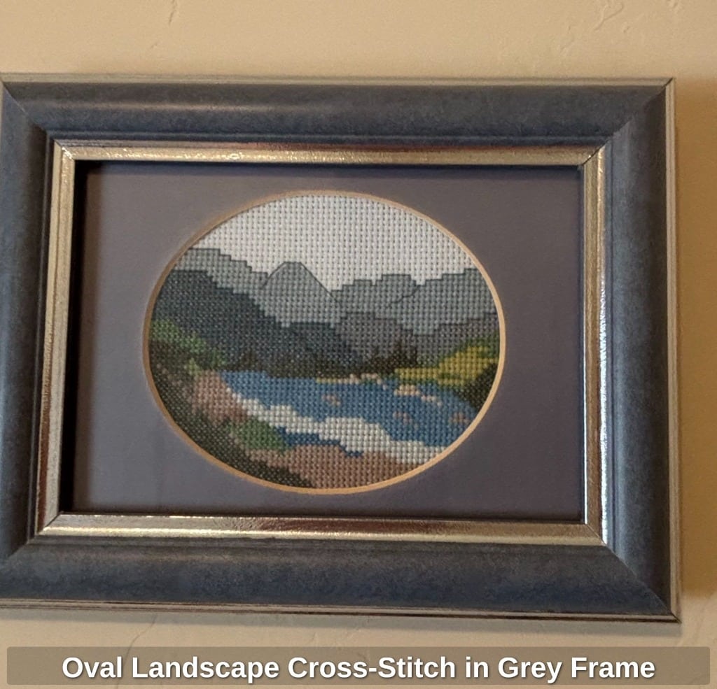 Framed Floral Cross-Stitch Embroidery