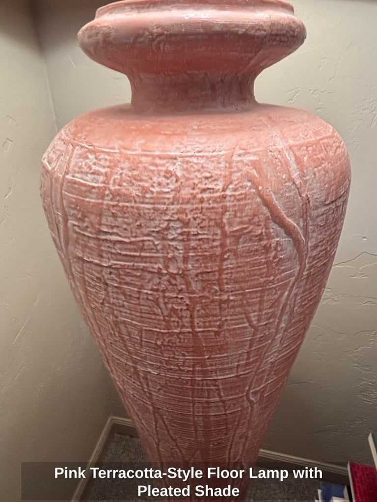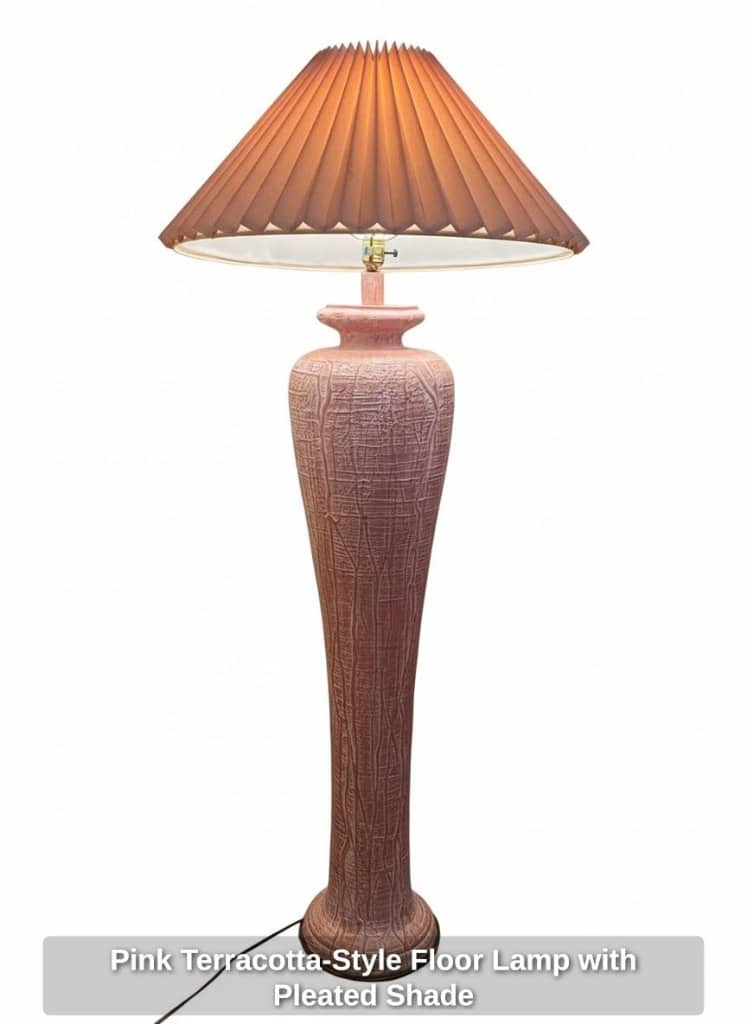 Pink Terracotta-Style Floor Lamp with Pleated Shade