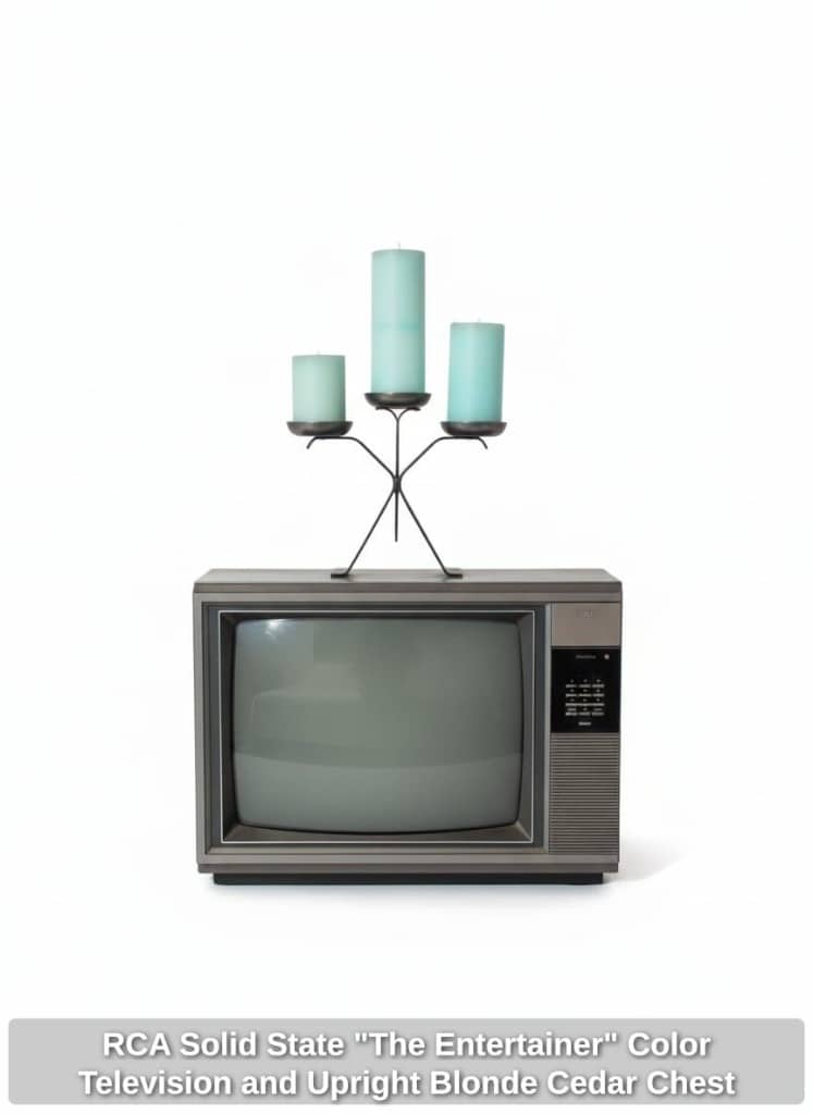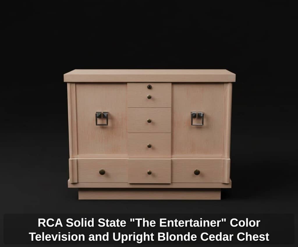 RCA Solid State “The Entertainer” Color Television and Upright Blonde Cedar Chest
