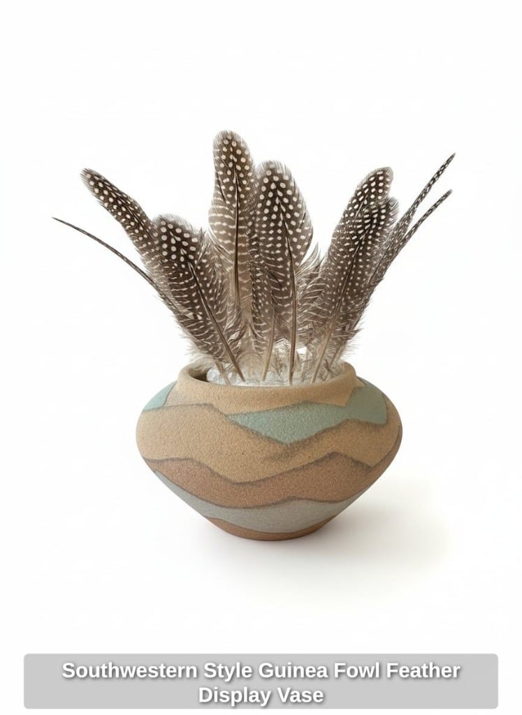 Southwestern Style Guinea Fowl Feather Display Vase
