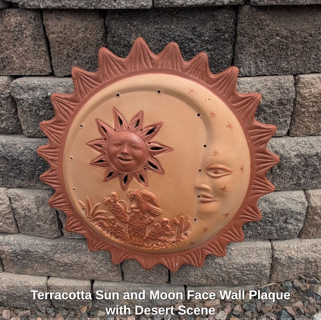 Terracotta Sun and Moon Face Wall Plaque with Desert Scene