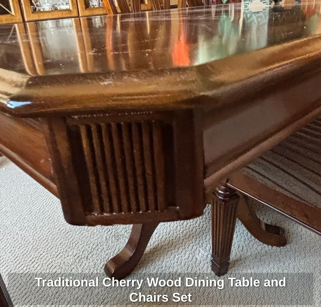 Traditional Cherry Wood Dining Table and Chairs Set
