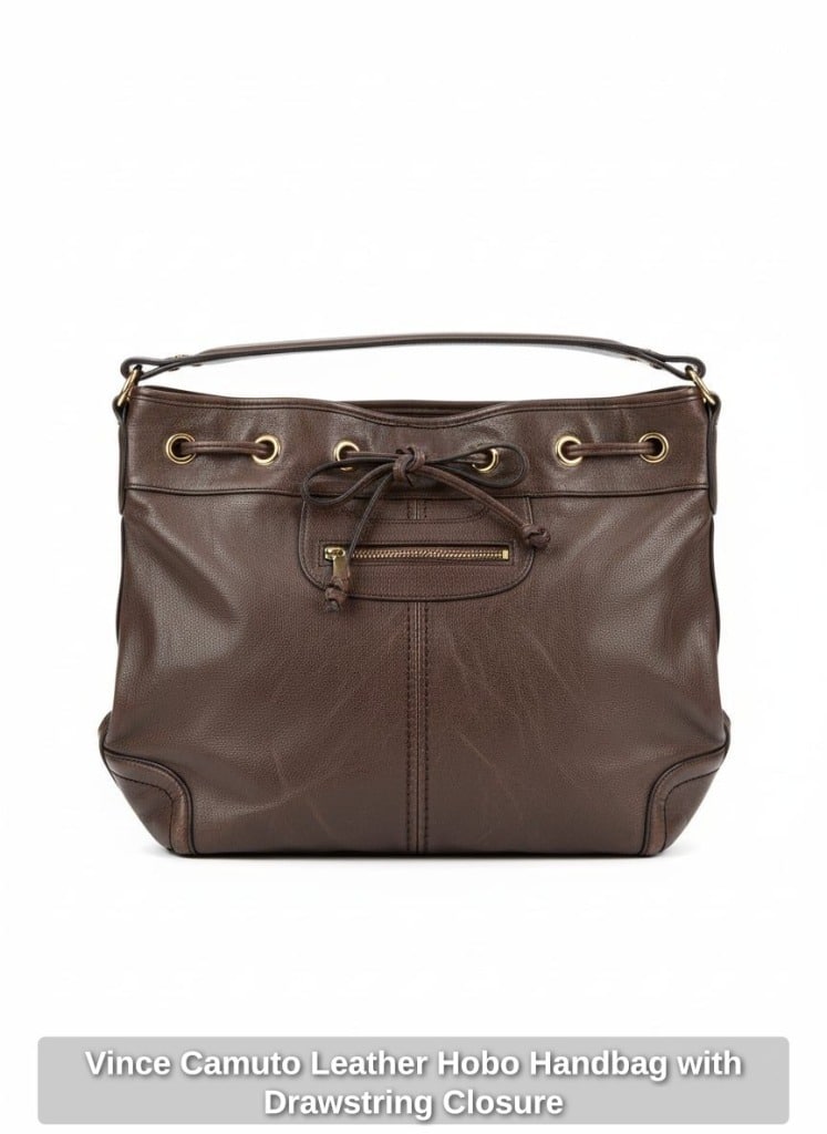 Vince Camuto Leather Hobo Handbag with Drawstring Closure