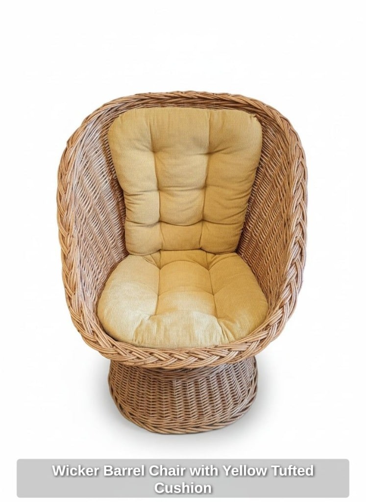 Wicker Barrel Chair with Yellow Tufted Cushion