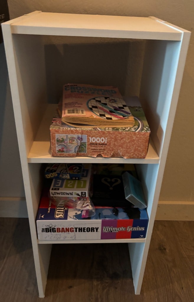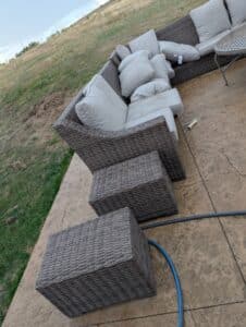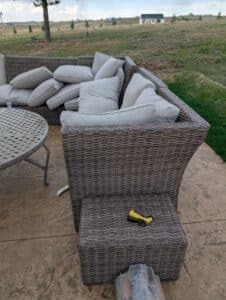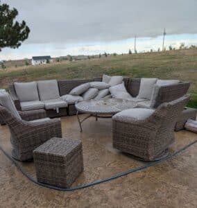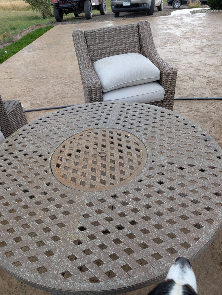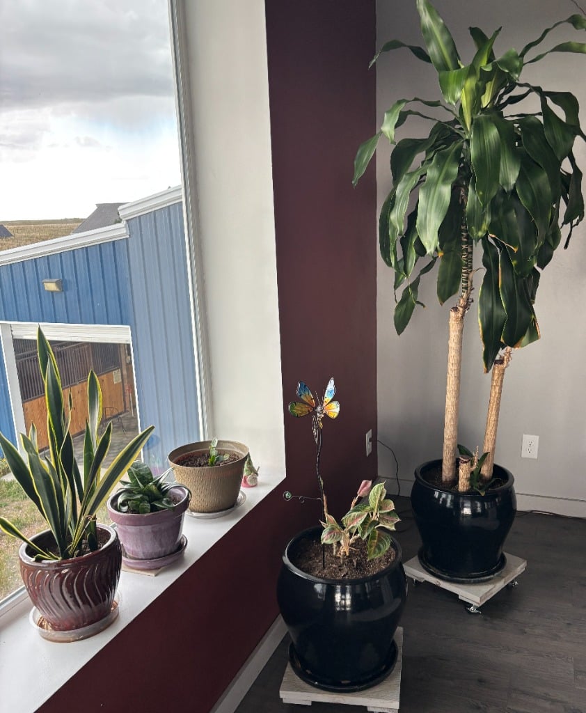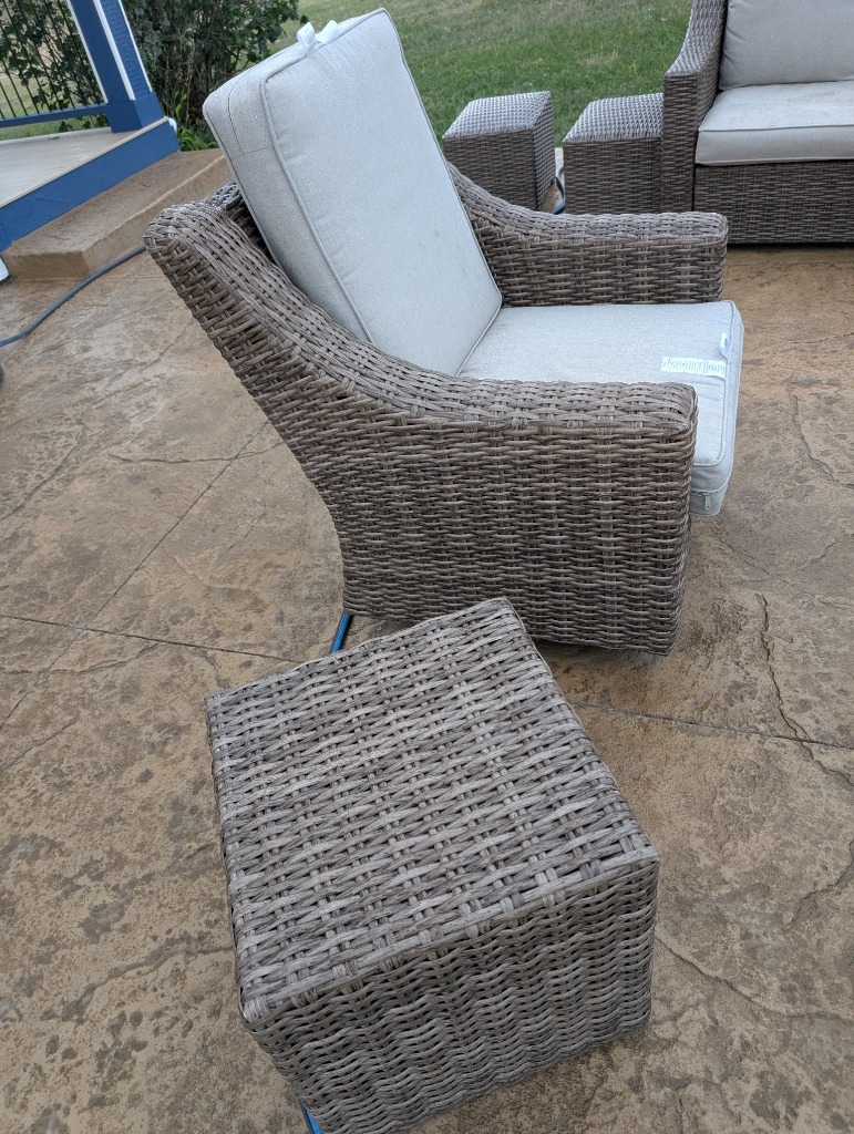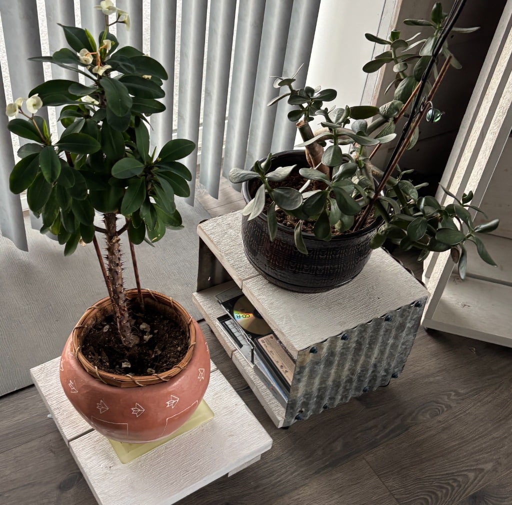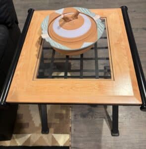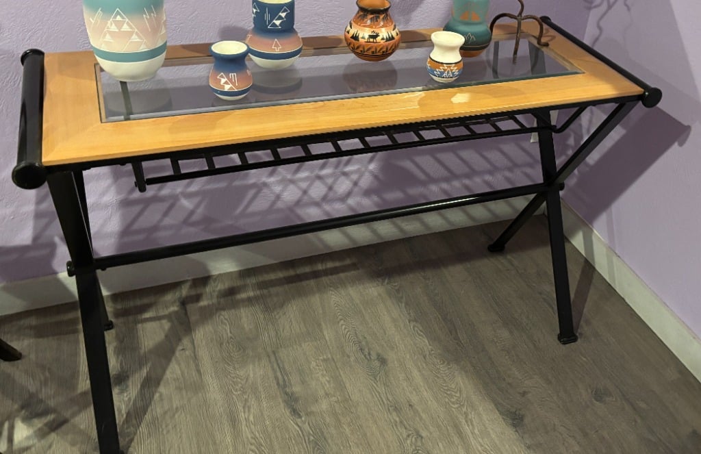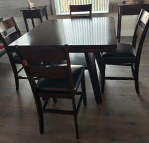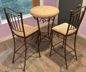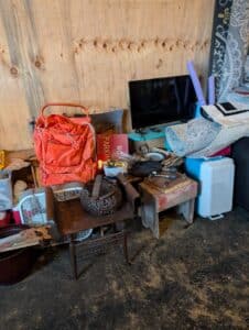 Lots of mature live plants, Wicker and iron Patio Furniture. Floor and table lamps, Nice Black and Brown Leather furniture, Media, 4 small TV’s, TV stands, MCM Dressers, Beds, Cal King Wooden log bedroom set and matching mirror, Metal Bar stools, Stone hi-top table, Canning jars, Tiffany style lamp, Art supplies, Pullout sleeper sofa, PUFFY.  Dining room tables and other small tables and stands.